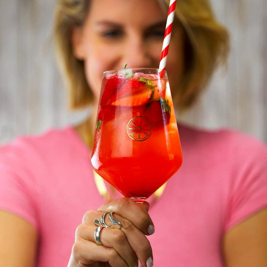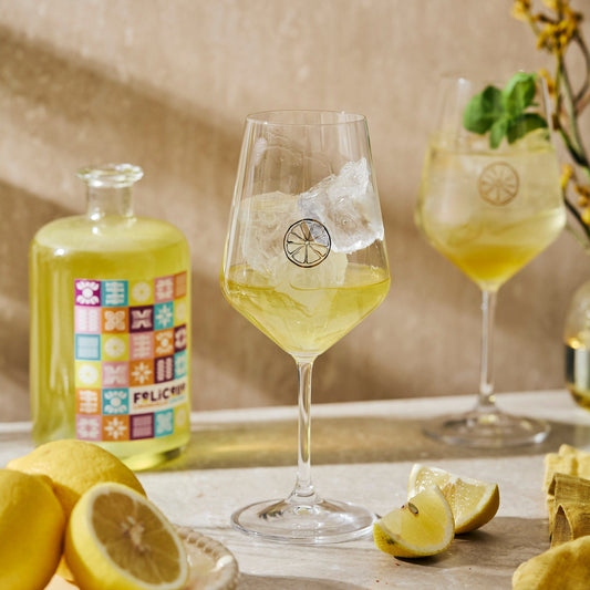 Dieses Weißwein-Glas habe ich extra für Euch und meinen neuen Wein entwerfen lassen. Dafür wurde mein Zitronen-Logo in edlem Gold auf das hübsch geformte Stiel-Glas gedruckt.